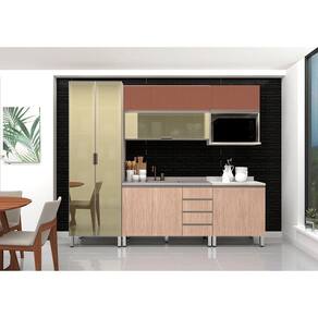 Armário de Cozinha Compacta 6 Peças sem Tampo Legno Crema com Cumaru e Gaia Luci Luciane Móveis