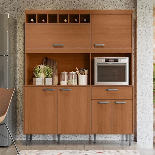 Armário de Cozinha Dakota 6 Portas 1 Gaveta e Adega para 6 Garrafas Jequitibá - Lukaliam