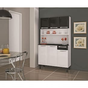 Armário de Cozinha 6 Portas 1 Gaveta Rose I3G1-105 Itatiaia - Branco/Preto