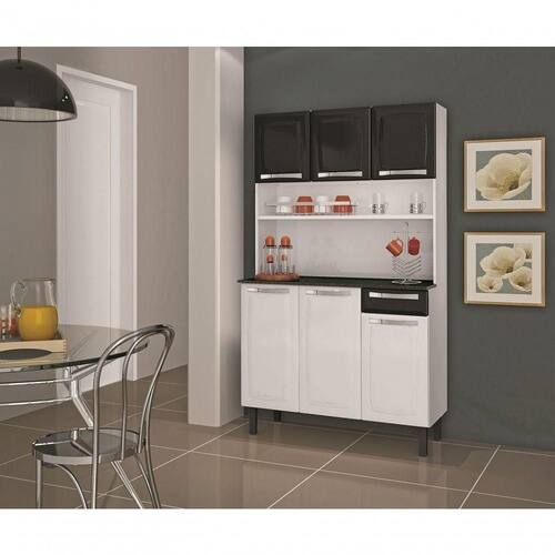 Armário de Cozinha 6 Portas 1 Gaveta Rose I3G1-105 Itatiaia - Branco/Preto