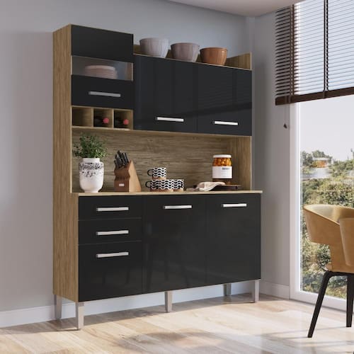Com o armário AC6200 seu cantinho do café ou da cozinha ficará ainda mais especial. Com tampo espaçoso, comporta forno ou seus utensílios de cozinha. Possui espaço adega para 3 garrafas e linda porta com detalhe em vidro.