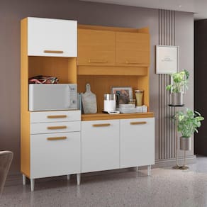 Com 6 portas e 2 gavetas com corrediças telescópicas, oferece amplo espaço para armazenar utensílios, alimentos e outros itens de forma prática e organizada. As gavetas com puxadores em MDF proporcionam firmeza e robustez no uso diário.