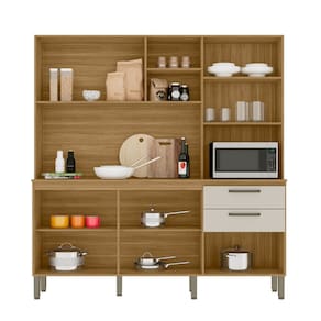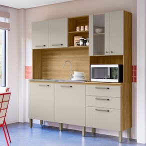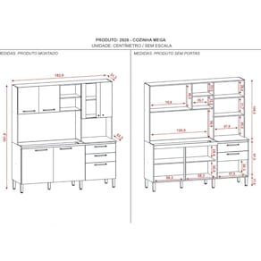 A Cozinha Mega é produzida com madeira reconstituída provinda de reservas florestais para este fim. Possui sete portas sendo uma com vidro que destaca a peça em seu ambiente, duas amplas gavetas com corrediças telescópicas 100% metálicas que possibilitam a abertura total da gaveta. Os puxadores são ergonômicos em plástico resistente (poliestireno), mais beleza para sua cozinha. Sete pés reguláveis em plástico resistente (polipropileno) garantem a estabilidade do produto, podendo-se fazer pequenes ajustes na montagem, para o produto se adequar em pisos irregulares. Conta com nicho para pequenos objetos, além de nicho para micro-ondas. O espaço interno é bem dividido com a utilização de prateleiras para melhor organizar os utensílios da cozinha. Acabamento da Prateleira: Pintura Texturizada UV Escala de Brilho da Prateleira: Fosco Acabamento da Gaveta: Pintura Escala de Brilho da Gaveta: Fosco Material do Puxador da Gaveta: Poliestireno Acabamento da Porta: Pintura Escala de Brilho da Porta: Fosco Material do Puxador da Porta: Poliestireno Acabamento dos Pés: Polipropileno Acompanha Tampo: Não Altura dos Pés: 17 cm Altura Máxima dos Pés: 17.0000 Ambiente Principal: Cozinha Balcão Suporta Pia: Sim codigo_ean: 7900288027641 Complexidade da Montagem: Média: pode ser montado por mais de uma pessoa e/ou necessite de maior conhecimento para montagem Cor: Freijó/Soft Cor do Produto: Freijó/Soft Cor Interna: Freijó Escala de Brilho: Semi-Fosco Espessura do Material da Estrutura: 15 mm Gaveta com Chave: Não Informações Complementares: Considerar um peso bem distribuído por todo o produto. Itens Inclusos: 1 Cozinha Compacta + Kit Ferragens + Manual de Montagem Manual de Montagem e Instalação: https://product-hub-prd.madeiramadeira.com.br/970812/documents/f0db324f-8db6-418b-b32a-0c4e196cc0f8425610978152928cozinhamega.pdf Marca: Kits Paraná Material da Dobradiça/Corrediça da Porta: Metálica Material da Gaveta: MDP Material da Porta: MDP Material da Prateleira: MDP Material do Fundo: Madefibra Material dos Pés: Polipropileno Necessita Montagem: Sim O Balcão Acompanha Pia: Não Origem do Produto: Nacional Pés Reguláveis: Sim Peso: 80,5 kg Peso Máximo por Gaveta: 10 kg Peso Máximo por Prateleira: 4 kg Possui Pés: 07 Possui Portas: Sim Possui Prateleiras: Sim Possui recorte para Cooktop: Não Possui Rodízio: Não Possui Vidro: Sim Produto Montado: Sim Recomendações de Uso, Manutenção e Limpeza: Limpeza do produto somente com pano seco ou levemente umedecido, não utilizar abrasivos. Respeitar o limite de peso estabelecido no esquema de montagem. Evitar mover o produto com utensílios dentro. Sapatas Niveladoras: Não Sistema de Montagem: Cavilhas, parafusos e pregos. Suporta Até (kg): 93 kg Tamanho Indicado da Pia: 1200 Tamanho Indicado do Tampo: 1200 Tamanho Indicado do Tampo ou Pia: 1200 Tipo de Corrediça da Gaveta: Metálica Telescópica Tipo de Dobradiça da Porta: Simples Tipo de Puxador da Gaveta: Externo Tipo de Puxador da Porta: Externo
