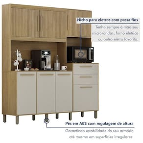 Renove sua cozinha com estilo e funcionalidade com nosso Armario de Cozinha! As portas superiores trazem detalhes frisados e puxadores em MDF que adicionam elegancia ao design, enquanto o nicho para micro-ondas otimiza o espaco e facilita o dia a dia. E para completar, as gavetas com corredicas telescopicas garantem um deslizamento suave e sem esforco, oferecendo praticidade na hora de organizar seus utensilios. Combinando elegancia e eficiencia, esse armario e perfeito para transformar sua cozinha em um ambiente moderno.