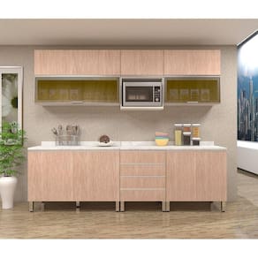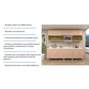 Armário de Cozinha Completa 8 Peças com Tampo Legno Crema com Cumaru Lis Luciane Móveis