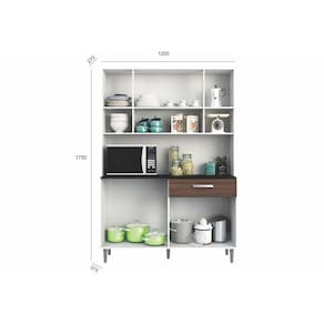 O Armário de Cozinha Gabi é ideal para quem deseja praticidade e funcionalidade em qualquer ambiente. Com design compacto e uma excelente disposição interna, traz na sua composição 08 portas sendo 02 com vidro, 01 gaveta com corrediça metálica deslizante, espaço para micro-ondas ou demais aparelhos de utilidade doméstica, prateleira e nicho organizador decorativo dando um charme especial à peça. Produto com pés reguláveis fabricado em MDP que garante a qualidade que só a Poliman oferece em seus produtos. Acabamento da Prateleira: Pintura Texturizada UV Escala de Brilho da Prateleira: Fosco Acabamento da Gaveta: Pintura Texturizada UV Escala de Brilho da Gaveta: Fosco Material do Puxador da Gaveta: Plástico Acabamento da Porta: Pintura Escala de Brilho da Porta: Fosco Material do Puxador da Porta: Plástico Acabamento dos Pés: Poliéster Altura dos Pés: 4 cm Altura Máxima dos Pés: 4.0000 Ambiente: Cozinha Ambiente Principal: Cozinha codigo_ean: 7894867021086 Complexidade da Montagem: Média: pode ser montado por mais de uma pessoa e/ou necessite de maior conhecimento para montagem Cor: Branco/Rovere/Amêndoa Cor: Branco/Rovere/Amêndoa Cor Flex: não Cor Interna: branco Escala de Brilho: Fosco Gaveta com Chave: Não Itens Inclusos: Armário de Cozinha, Manual de montagem e acessórios de montagem. Linha ou Coleção: Gabi Manual de Montagem e Instalação: https://product-hub-prd.madeiramadeira.com.br/280043/documents/303fbe40-f858-4cbb-b46b-27b7db2acb06nualmontagemkitcozinhagabi.pdf Material da Dobradiça/Corrediça da Porta: Metálica Material da Gaveta: MDF Material da Porta: MDP Material da Prateleira: MDP Material dos Pés: Plástico Montagem Flex: não Necessita Montagem: Sim Origem do Produto: Nacional Pés Reguláveis: Não Peso: 39,8 kg Peso Máximo por Gaveta: 5 kg Peso Máximo por Prateleira: 10 kg Possui Espelho: Não Possui Possui Pés: 05 Possui Portas: Sim Possui Prateleiras: Sim Possui Rodízio: Não Produto Montado: Sim Recomendações de Uso, Manutenção e Limpeza: Para limpeza utilize apenas pano umedecido com água. Resistente à Chuva: Não Rodízio com Trava: Não Sapatas Niveladoras: Não Sistema de Montagem: Parafusos, pregos, cavilhas. Suporta Até (kg): 26 kg Tipo de Corrediça da Gaveta: Metálica Simples Tipo de Dobradiça/Corrediça da Porta: Metálica Tipo de Madeira Maciça: MDP Tipo de Madeira Maciça da Porta: MDP Tipo de Madeira Maciça da Prateleira: MDP Tipo de Madeira Maciça do Puxador da Porta: Plástico Tipo de Puxador da Gaveta: Externo Tipo de Puxador da Porta: Externo