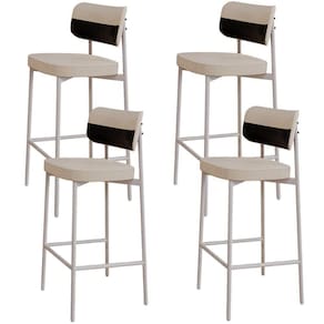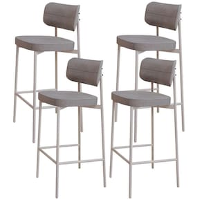 Kit 04 Banquetas Alta Bar Cozinha Sala De Jantar Aço Branco Kaira C01 Linho Areia - Lyam Decor
