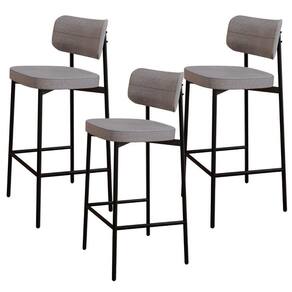 Kit 03 Banquetas Alta Bar Cozinha Sala De Jantar Aço Preto Kaira C01 Linho Cinza Courino Café - Lyam Decor