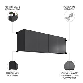 Armário de Cozinha Aéreo 118cm 4 Portas Monna Grafite Z34 - Mpozenato