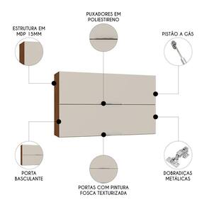 Fabricado em MDP de 15 mm, o Armário Aéreo conta com dobradiças metálicas, puxadores em poliestireno e pistão a gás que oferece suavidade ao abrir e fechar as duas portas basculantes, proporcionando mais conforto e evitando impactos. O acabamento em pintura fosca texturizada na estrutura e acetinada nas portas, com secagem realizada por luzes UV, confere ao móvel um toque agradável e elegante, além de aumentar sua resistência e durabilidade. Esse Armário de Cozinha possui prateleira interna e é perfeito para organizar seus itens com praticidade, tornando sua rotina mais eficiente.