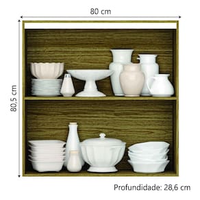 MEDIDAS: [ A ] = 80,5 cm [ L ] = 80 cm [ P ] = 28,6 cm PESO: 16,75 kg PESO SUPORTADO: 8 kg PESO SUPORTADO POR PRATELEIRA: 8 kg MODELO: Armário De Cozinha Aéreo 2 Portas Articuladas 0,80m Módulo Suspenso Art Kit’s Paraná MARCA: Kit’s Paraná COR: Madeirado / Freijó ACABAMENTO: Fosco / Riscatto MATERIAL DA ESTRUTURA: MDP ESPESSURA DO MATERIAL DA ESTRUTURA: 12mm PORTAS: 2 TIPO DE PORTA: Articulada DOBRADIÇAS: Metálicas com Amortecedores PRATELEIRAS: 1 GARANTIA: 3 meses ITENS INCLUSOS: 1 Armário Aéreo, 1 Manual de montagem, 1 Kit Parafusos INSTRUÇÕES E CUIDADOS: Para maior durabilidade, recomendável que a limpeza dos móveis seja feita com pano limpo e levemente umedecido em água e sabão neutro. Em seguida, deverá ser passado um pano limpo e seco.