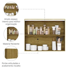 MODELO: Armário De Cozinha Aéreo 2 Portas Articuladas 1,20m Módulo Suspenso Madeirado Art Kits Paraná