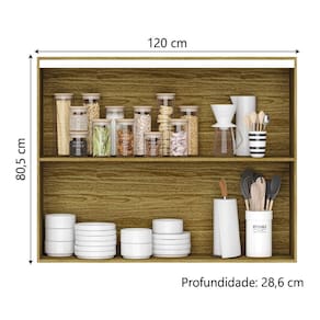 Certifique-se de tudo antes de finalizar a compra, evitando assim futuros desagrados ou imprevistos com a . MEDIDAS:: [ A ] = 80,5 cm [ L ] = 120 cm [ P ] = 28,6 cm | PESO:: 23,75 kg | PRODUTO SUPORTA ATÉ:: 12 kg | MODELO:: Armário De Cozinha Aéreo 2 Portas Articuladas 1,20m Módulo Suspenso Madeirado Art Kits Paraná | MARCA:: Kits Paraná | COR:: Madeirado / Freijó | ACABAMENTO:: Fosco / Riscatto | MATERIAL DA ESTRUTURA:: MDP | ESPESSURA DO MATERIAL DA ESTRUTURA:: 12mm | PORTAS:: 2 | TIPO DE PORTA:: Articulada | DOBRADIÇAS:: Metálicas com Amortecedores | PRATELEIRAS:: 1 | GARANTIA:: 3 meses | ITENS INCLUSOS:: 1 Armário Aéreo, 1 Manual de montagem, 1 Kit Parafusos | INSTRUÇÕES E CUIDADOS:: Para maior durabilidade, recomendável que a limpeza dos móveis seja feita com pano limpo e levemente umedecido em água e sabão neutro. Em seguida, deverá ser passado um pano limpo e seco. | AVISO:: A Esplanada Móveis se responsabiliza pela dos produtos adquiridos até a porta de entrada ou portaria do endereço indicado, se a portaria do condomínio permitir, as s são efetuadas no piso térreo e é de responsabilidade do cliente Cor: madeirado