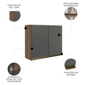 O Armário de Cozinha Aéreo 80cm Maly N03 Carvalho/Grafite, da Mpozenato em MDF de 15mm representa uma excelente escolha para aqueles que desejam otimizar o espaço e organizar com muito estilo.