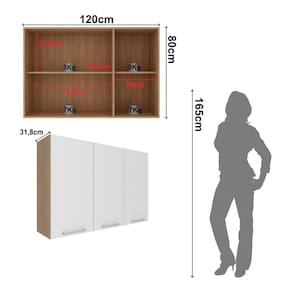 Especificações Técnicas: Altura: 80cm | Largura: 120cm | Profundidade: 31,8cm Material: MDP Acabamento: BP Quantidade de Portas: 3 Dobradiças: Slow Motion Material dos Puxadores: Alumínio