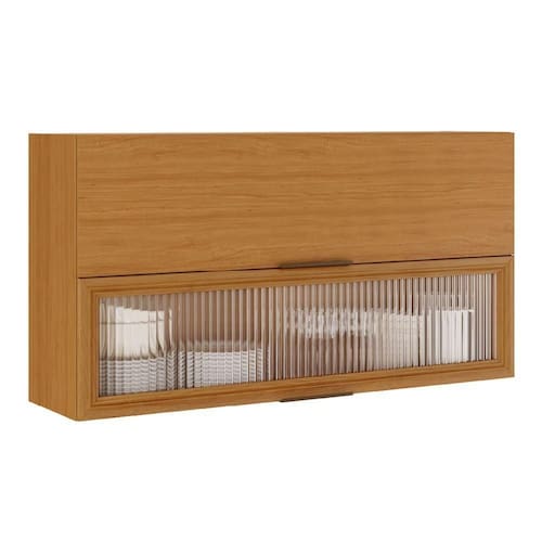 MODELO: Armário De Cozinha Aéreo Duplo 2 Portas Com Vidro Canelado Módulo Suspenso Namur
