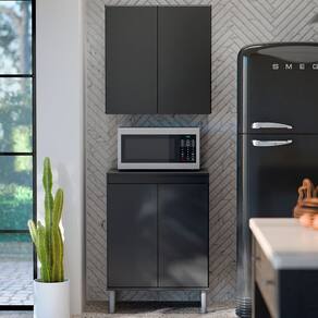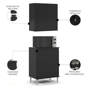 Deixe a sua cozinha ainda mais funcional e elegante com o Armário de Cozinha Aéreo e Balcão com Tampo Italy Preto - EJ Móveis, perfeito para completar a decoração e organização do seu espaço.