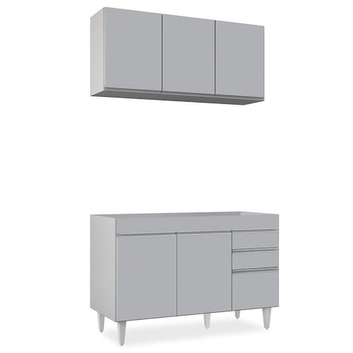 Confira agora o Armário de Cozinha Aéreo Virgínia e Balcão Para Pia 120cm Michigan Cinza Claro imperdível que a Lumil preparou e tenha a Cozinha Moderna e funcional que sempre quis!!