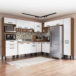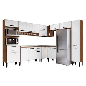 O(a) Armário de Cozinha Amanda 17 Portas 3 Gaveta Freijó/Branco - Pnr Móveis é produzido em MDP na escala de brilho Fosco, e possui um grau de dificuldade de montagem: Médio.