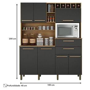Armário de Cozinha Ambiente Monte Rey Cinamomo Grafite - Valdemóveis