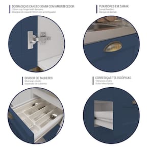 Armário de Cozinha Americana Modulada 120cm com Balcão para Pia Multimóveis CR20492 - Azul