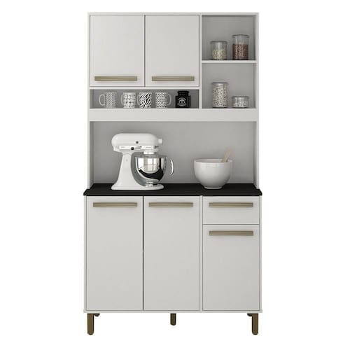 Espaco para organizar tudo o que voce precisa e um design pensado para deixar o seu comodo de chef mais bonito: essas vantagens voce so encontra no Armario Ametista. Unindo compartimentos internos essenciais, ela recebe bem os utensilios, panelas, loucas e embalagens de alimentos, alem de acomodar tambem aqueles eletrodomesticos indispensaveis para um dia a dia mais pratico. Enquanto isso, por fora, a estrutura tradicional, que se encaixa muito bem no ambiente, carrega uma coloracao sobria que e reforcada pelos puxadores discretos, perfeitos para quem quer acrescentar charme a decoracao sem deixar de lado a elegancia de uma peca versatil.