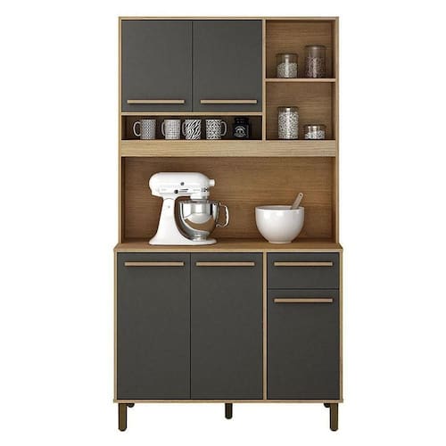 Armário de Cozinha Ametista Cinamomo Grafite - Valdemóveis
