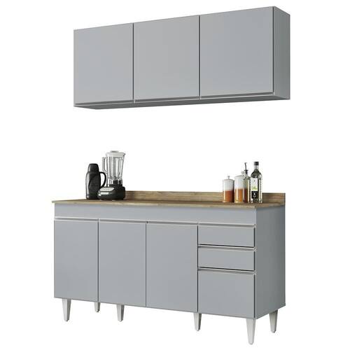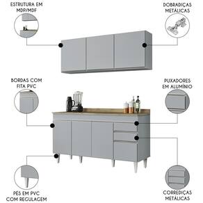 Praticidade e funcionalidade são as palavras que definem o Armário de Cozinha Aéreo Argélia e Balcão com Tampo 150cm Marrocos Cinza Claro da Lumil!