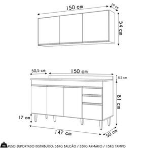Conteúdo da Embalagem: 1 Armário Aéreo, 1 Balcão, 1 Tampo.