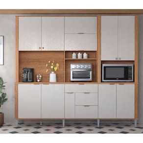 Armário de Cozinha Astra 10 Portas 4 Gavetas Jequitibá/Areia - Lukaliam