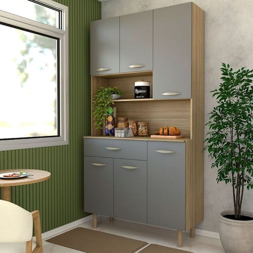 O(a) Armário de Cozinha Beatrice 6 Portas 1 Gaveta Freijó/Gris - Loja é produzido em MDP na escala de brilho Semi-Brilho e Semi-Fosco, e possui um grau de dificuldade de montagem: Médio.