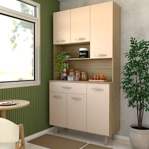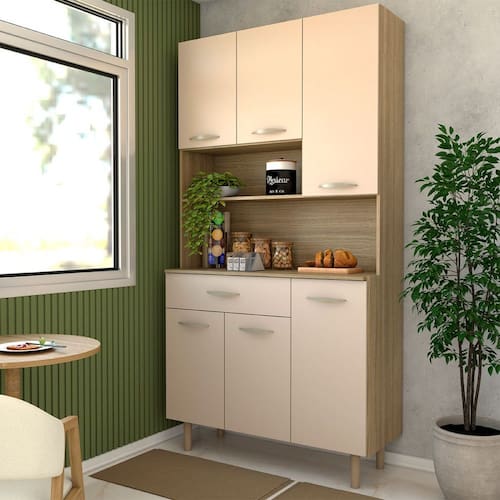 O(a) Armário de Cozinha Beatrice 6 Portas 1 Gaveta Freijó/Vanilla - Loja é produzido em MDP na escala de brilho Semi-Brilho e Semi-Fosco, e possui um grau de dificuldade de montagem: Médio.