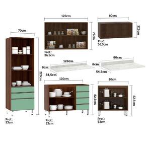 Armário De Cozinha Completa Com 5 Peças E Tampo Jade Luciane Móveis Nogueira Dourado Com Verde Jade