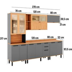 Cor: Freijó com Cinza | Inclui manual de montagem: Sim | Materiais do corpo: MDP | Requer Montagem: Sim | Tipo de móveis de cozinha: Cozinha Completa