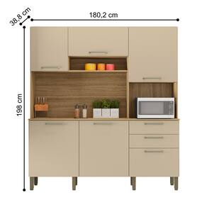 A Cozinha traz a tona todo o conceito de amplitude e organização para o ambiente, amplas repartições e nichos compõem a peça para melhor dispor de objetos e afins. Contém também espaço para forno ou micro, trazendo a praticidade de ter tudo em um só produto. Além de respeitar o meio ambiente a cozinha Ferrara vem com o acabamento com pintura fosca e textura sensível ao toque.