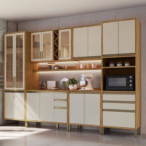 O(a) Armário de Cozinha com Balcão e Tampo 16 Portas 5 Gavetas Pérola 100% Mdf Vidro Reflecta Amêndoa/Off White - Pnr Móveis é produzido em 100% MDF na escala de brilho Semi-Brilho, e possui um grau de dificuldade de montagem: Médio.