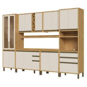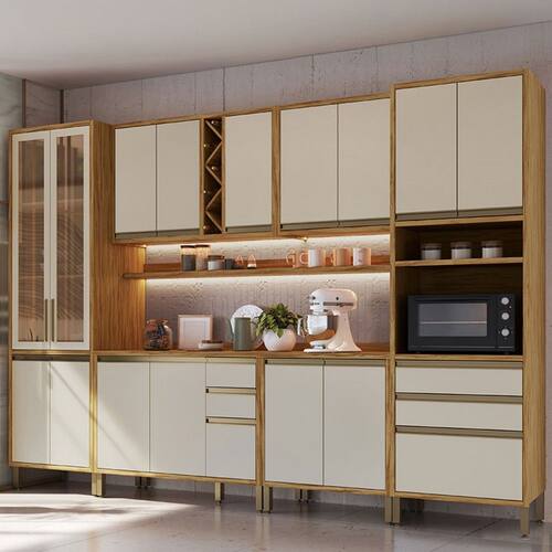 O(a) Armário de Cozinha com Balcão e Tampo 16 Portas 5 Gavetas Pérola Plus com Prateleiras 100% Mdf Vidro Reflecta Amêndoa/Off White - Pnr Móveis é produzido em 100% MDF na escala de brilho Semi-Brilho, e possui um grau de dificuldade de montagem: Médio.