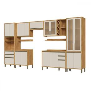 O(a) Armário de Cozinha com Balcão e Tampo 16 Portas 5 Gavetas Pérola Premium com Prateleiras 100% Mdf Vidro Reflecta Amêndoa/Off White - Pnr Móveis é produzido em 100% MDF na escala de brilho Semi-Brilho, e possui um grau de dificuldade de montagem: Médio.
