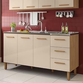 1 Armário de Cozinha com Balcão Fortaleza 3 Portas ( Sem pia )
