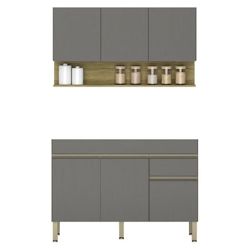 Você quer renovar a sua cozinha deixando mais moderna e funcional? Então conheça o Armário de Cozinha com Balcão sem Tampo 120cm Lina Z06 Gris/Freijó, da Mpozenato!