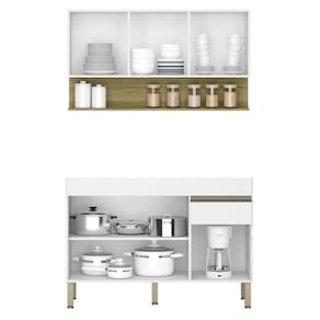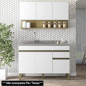Você quer renovar a sua cozinha deixando mais moderna e funcional? Então conheça o Armário de Cozinha com Balcão sem Tampo 120cm Lina Z06 Supremo/Freijó, da Mpozenato!