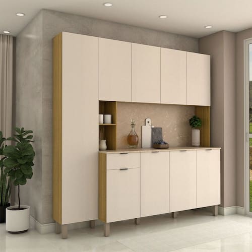 O(a) Armário de Cozinha com Balcão Talim 9 Portas 1 Gaveta Freijó/Soft - Loja é produzido em MDP na escala de brilho Semi-Brilho e Semi-Fosco, e possui um grau de dificuldade de montagem: Médio.