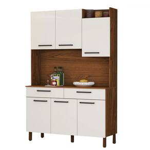 O(a) Armário de Cozinha com Balcão Ushuaia 6 Portas 2 Gavetas Nogueira/Off White - Loja é produzido em MDP na escala de brilho Semi-Fosco, e possui um grau de dificuldade de montagem: Médio.