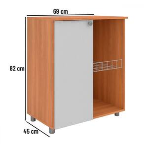 O(a) Armário de Cozinha com Fruteira âmbar 1 Porta Freijó/Branco - Telasul é produzido em MDP na escala de brilho Semi-Brilho, e possui um grau de dificuldade de montagem: Médio.