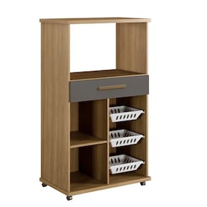 Unindo praticidade e funcionalidade a Fruteira Fortaleza era o que faltava em sua cozinha. Seu balcão com 2 tampos resistente é perfeito para micro-ondas ou forno elétrico. Possui também um a gaveta ampla com corrediça telescópica, uma prateleira interna removível e fruteiras em plastico. \nEspecificações Produto Montado: Altura: 127 cm Largura: 73 cm Profundidade: 45 cm Quantidade de Volumes: 1 Peso:38kg\nGarantia: 3 Meses Número de Portas: 01 Número de Prateleiras: 01 Número de Gavetas: 01 Número de Cestos: 03 Possui vidro: Não Possui rodízio: Sim\nObservações: Não oferecemos serviço de montagem, mas todos os produtos possuem manual de montagem com o passo a passo. Recomendamos contratar um profissional de montagem. Pode existir alguma diferença de tonalidade entre a foto e o produto, devido ao tratamento de imagens e à calibração de cores do monitor