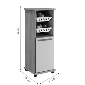 A Fruteira Paraná é prática e versátil, pois tem um design compacto e multifuncional. Conta com 02 cestos de plásticos removíveis para você colocar as frutas e legumes. Os pés são em rodízios possibilitando mover para todos os lugares. Possui uma porta e uma prateleira o que faz da organização de objetos, condimentos e utensílios muito mais prática.
