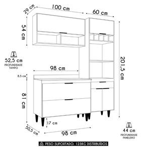 Conteúdo da Embalagem: 1 Armário Aéreo, 1 Balcão, 1 Paneleiro, 1 Tampo.