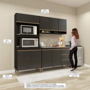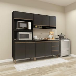 Armário De Cozinha Com Torre Quente Forno Micro Menu Móveis Preto A Cozinha Modulada Sabrina foi desenvolvida para atender todas as suas necessidades do dia a dia com um design moderno, cheio de atitude, personalidade, funcionalidade, beleza e versatilidade. A Cozinha preta e a tendencia do momento e foi arquitetada com modulos uteis que vao facilitar a sua rotina diaria nos preparos dos alimentos e armazenamento dos utensilios e mantimentos, mantendo sua cozinha sempre organizada. Por se tratar de armarios de cozinha modulados voce pode ajustar os modulos conforme o espaco disponivel e montar diversas modulacoes diferentes para deixar o ambiente muito mais aconchegante. A elegancia fica por conta dos puxadores em perfil e os pes dando um toque unico de sofisticacao. A Cozinha Sabrina e produzida com materiais de excelente qualidade, garantindo a durabilidade e vida util. O melhor em moveis no design atual aliando conforto, qualidade e otimos precos, so na Menu Moveis! Caracteristicas: Produzida em MDP de 15 mm Acabamento UV Texturizado Portas com Dobradica Metalica Porta Basculante com Pistao a Gas Gavetas com Corredica Telescopica Puxadores Perfil PVC Pes Regulares ABS NAO acompanha TAMPO e PIA