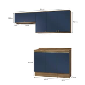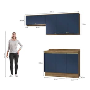 Acabamento: Pintura Fosco / Pintura Touch | Cor: Nogueira/Azul Profundo | Dobradiça: Com Amortecimento / Sem Amortecimento | Garantia: 3 meses para defeito de fabricação | Matéria-prima: MDF / MDP | Peso suportado por cada prateleira: 7 kg | Puxadores: Alumínio / Metálicos | Quantidade de portas: 1 / 2 / 3 | Quantidade de prateleiras: 1 / 2 | Sistema de montagem: Parafuso Philips | Tipo de porta: Bater | Duração da garantia: 3 meses | Montagem: Necessita montagem | Tipo de garantia: Garantia do fabricante | Tipo de móveis de cozinha: Combo de móveis de cozinha | Requer montagem: Sim