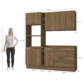Transforme sua cozinha com toda a beleza e praticidade do Conjunto CB1405 da Cozinha Celeste Kappesberg. Produzido 100% em MDF de 15mm, o que garante mais robustez, firmeza e qualidade, além de um acabamento perfeito. São 2,30m de altura, 2,05m de largura e 52cm de profundidade no balcão e 37cm nos aéreos, e sua a pintura touch na cor nogueira, com a textura dos veios da madeira, é perfeita para quem busca por um ambiente clássico e aconchegante.
